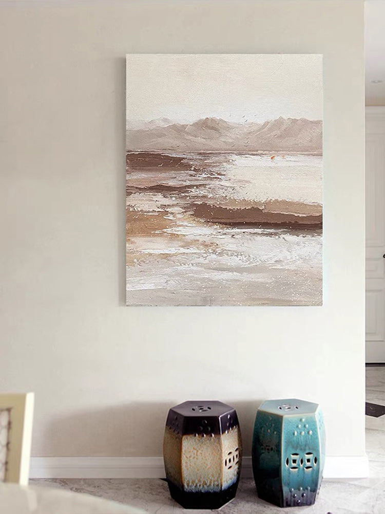 #1040Hand painted Coffee Abstract Landscape Mountain Oil Painting Wall Art On Canvas Texture Picture Living Room,31inx47in,No Frame