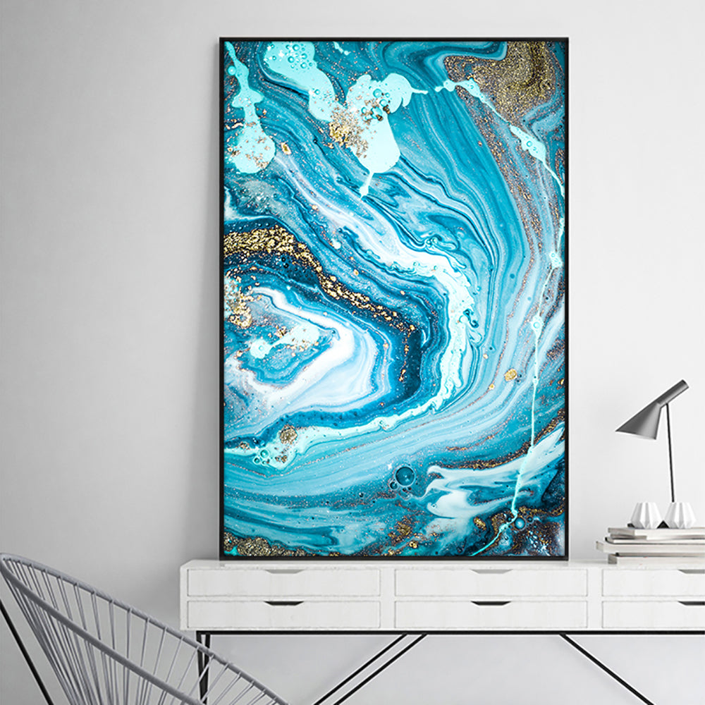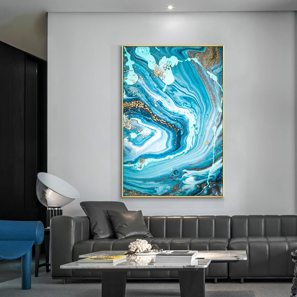 #1140Abstract Blue Seascape With Gold Foil Hand Painted Oil Painting On Canvas Unframed Handmade Wall Art For Living Room,31inx47in,No Frame
