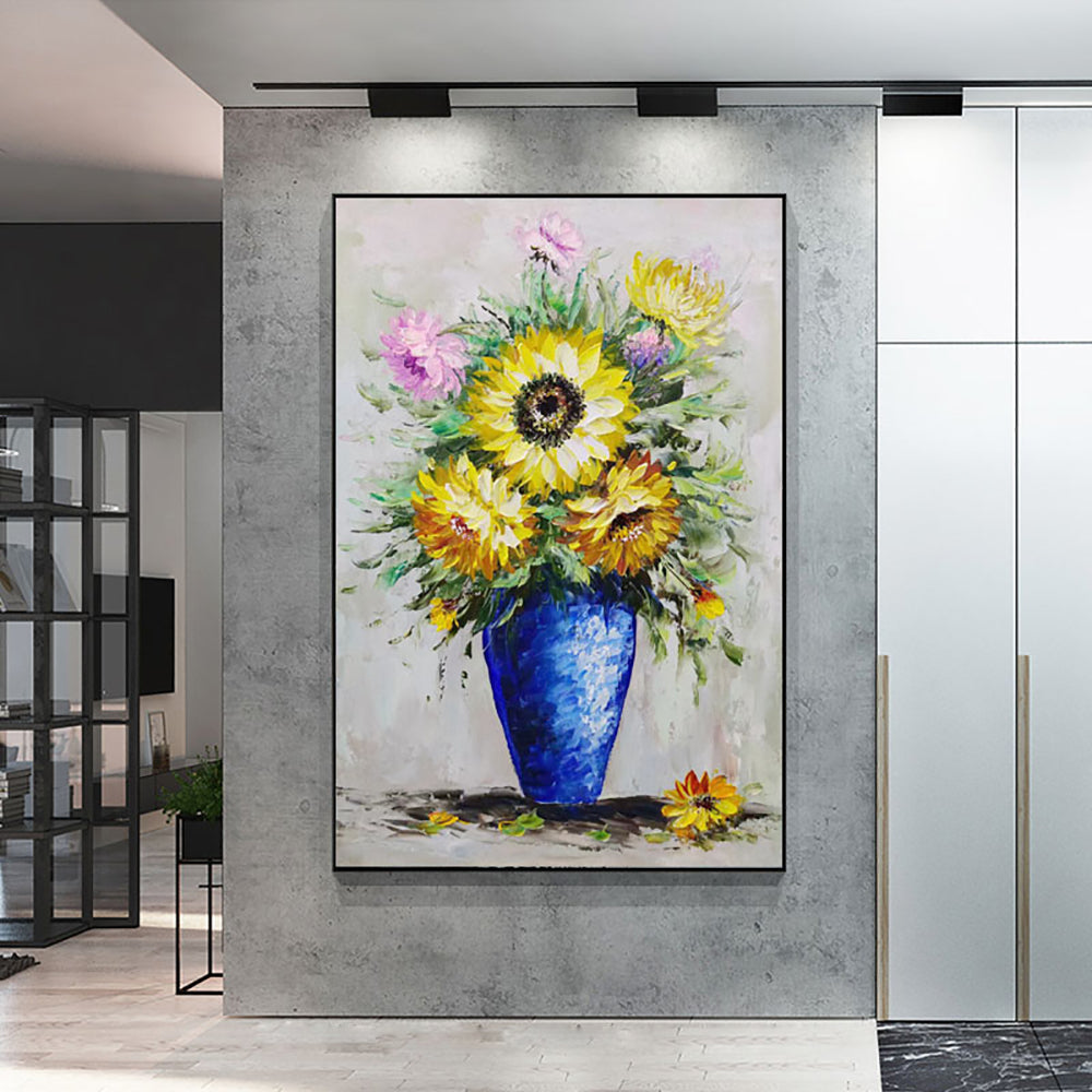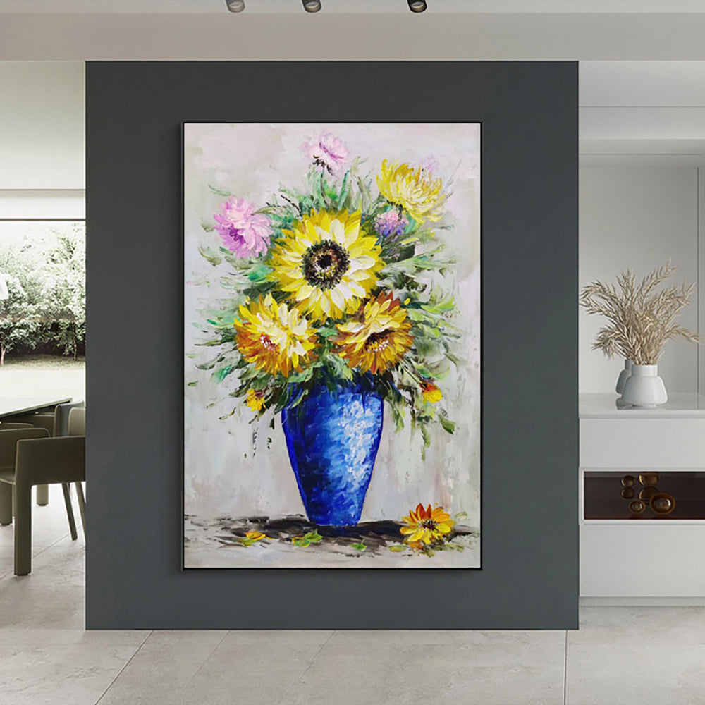 #1190Thick Texture Oil Painting Sunflower On Canvas Handmade Modern Paintings Hand Painted Artwork Picture For Living Room,31inx47in,No Frame