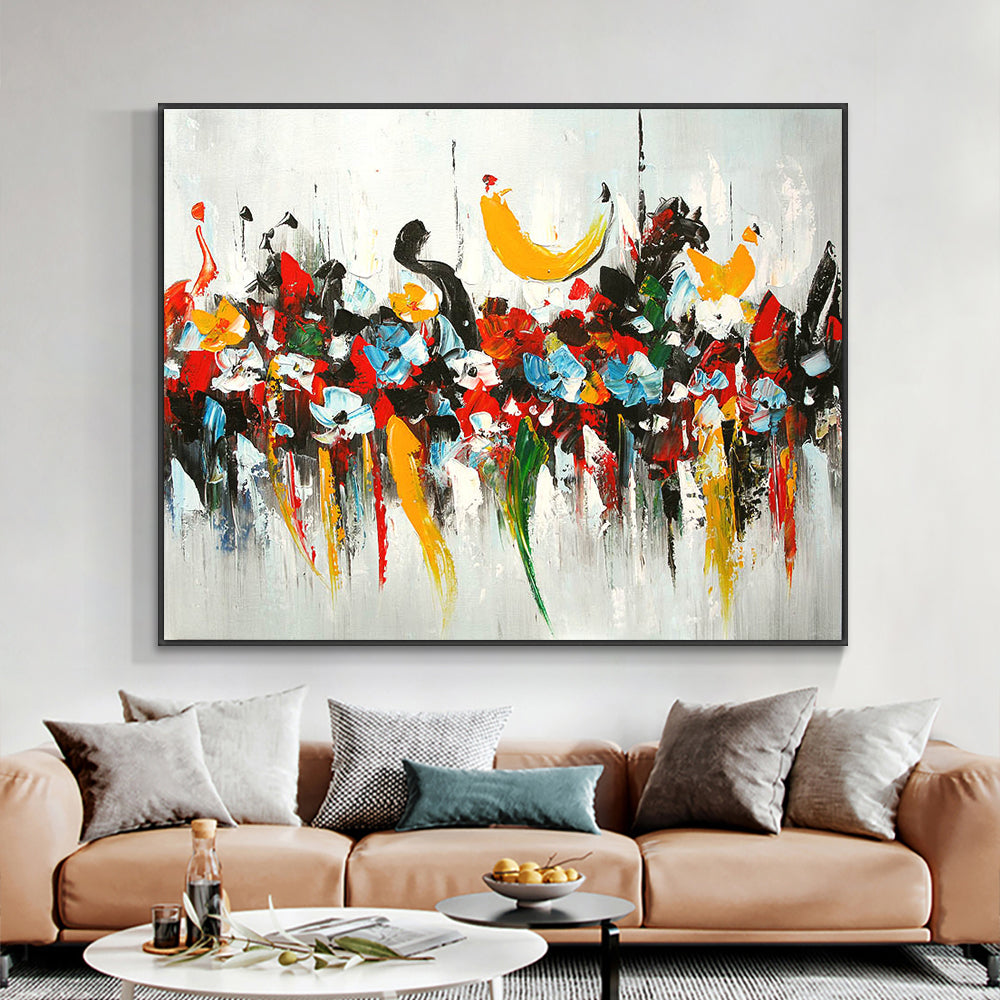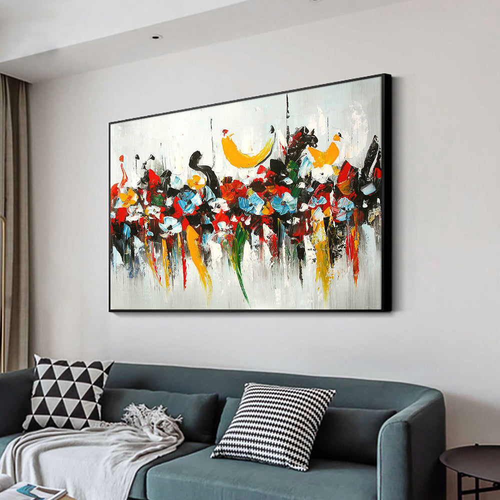 A new type of Abstract Wall Painting. a living room wall art, a hand-painted heavy textured impasto painting painted by our most noble artists. All images are painted by palette knife, so they will leave the canvas surface and look very vivid. I hope this beautiful and vivid acrylic painting with heavy texture can provide a very beautiful decoration for your walls.