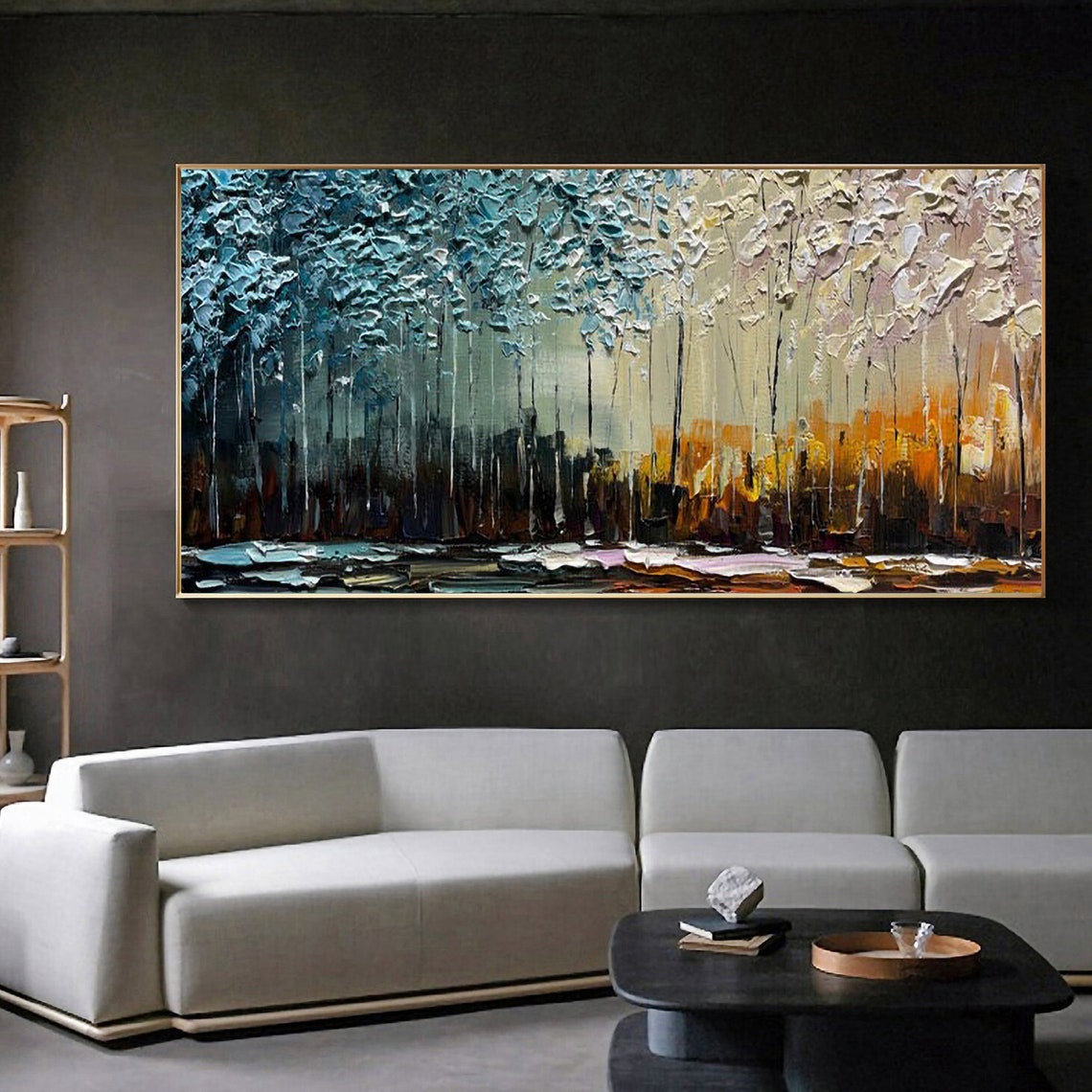 #520Abstract Forest Canvas Hand painted Oil Painting Original Painting Landscape Artwork Large Tree Handmade Oil Painting,27inx54in,No Frame