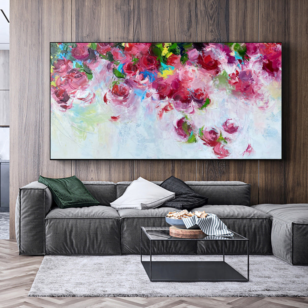 #580Abstract Flower Painting Wall Decor Artwork Handmade Oil Painting Art On Canvas Flower Picture,27inx54in,No Frame