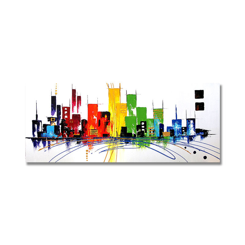 #590Hand painted Abstract Landscape Oil Painting Colorful Mordern Building Wall Art Handmade Canvas Painting for Livingroom,27inx54in,No Frame