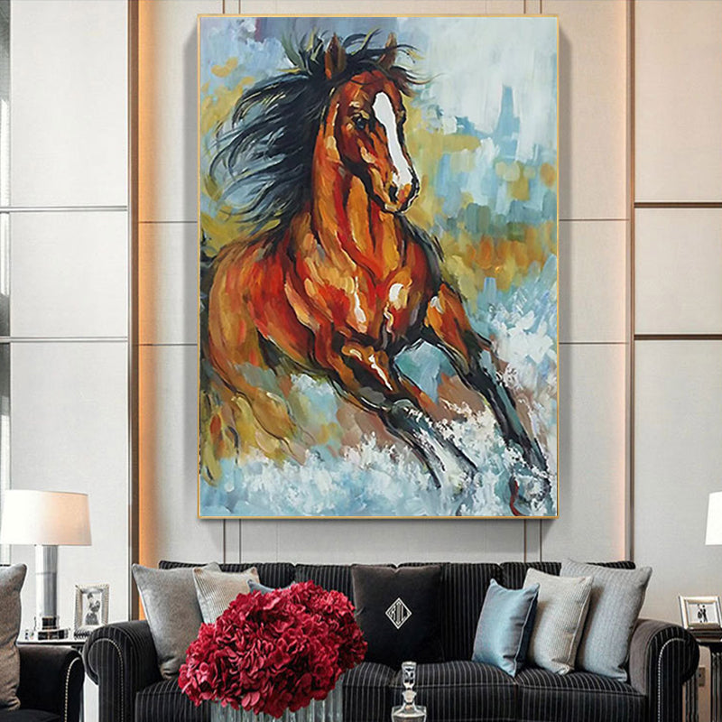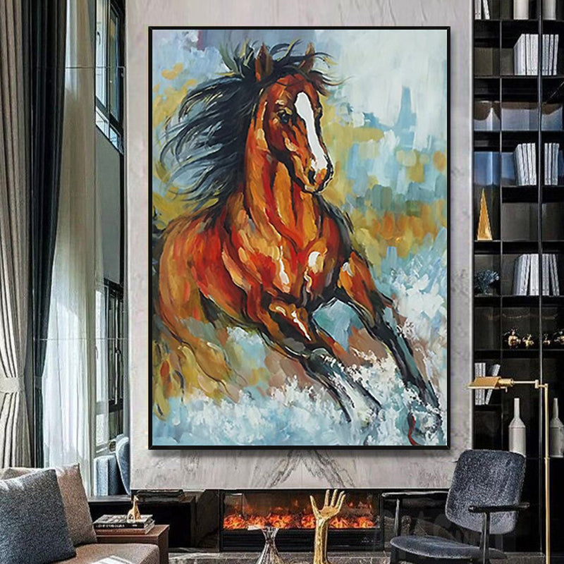 #690Animal Hand painted Abstract Oil Painting Galloping Horse Art Hanging Painting Living Room Study Decoration Canvas,31inx47in,No Frame