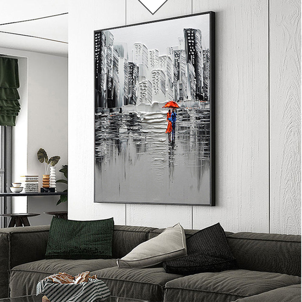 Abstract City Architecture Landscape Oil Painting On Canvas Handmade Modern Thick Oil Canvas Painting For Living Room Bedroom,31inx47in,No Frame
