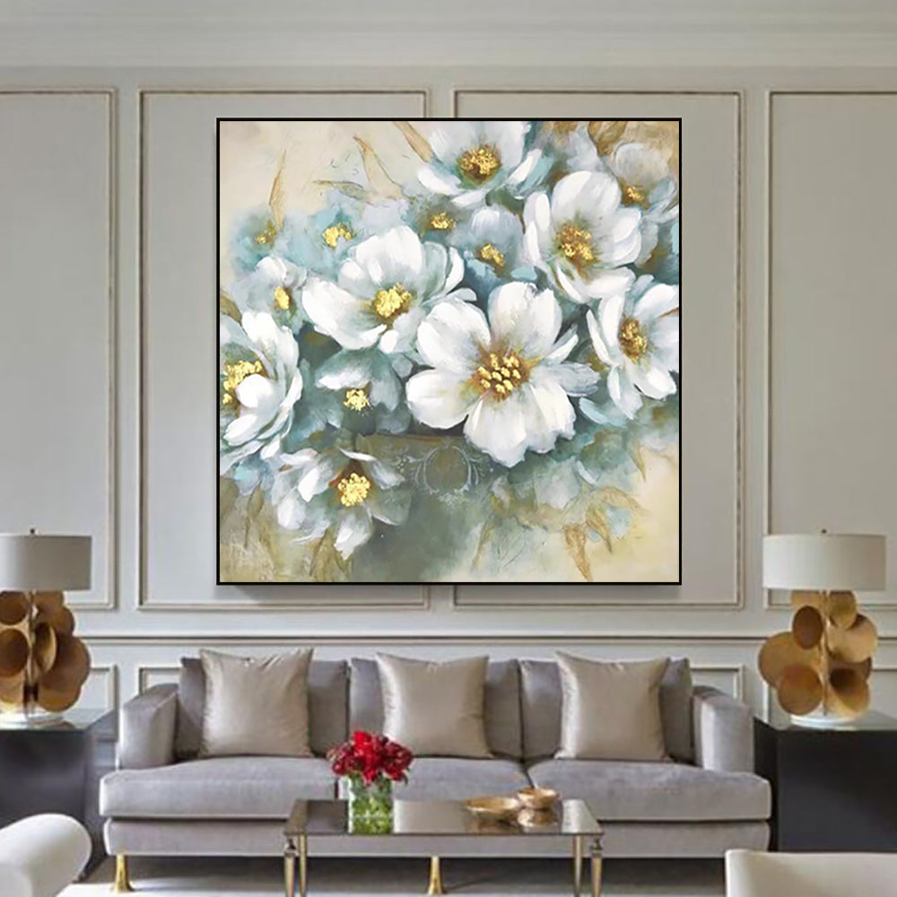 Abstract Flower Paintings Hand Painted Modern Canvas Oil Painting Wall Art Pictures Handmde Paintings Artwork Living,31inx31in,No Frame