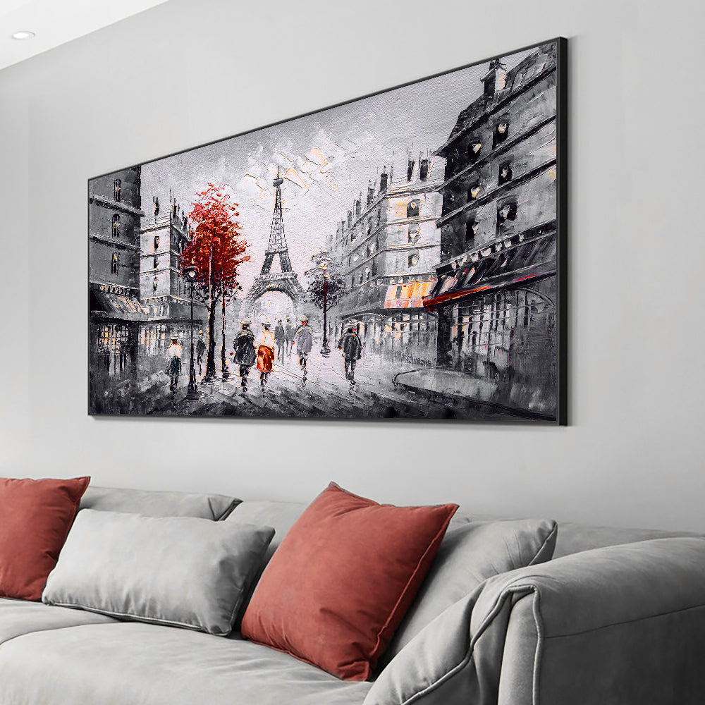 Abstract Handmade People Walking In The Street Oil Painting On Canvas Modern City Building Tower,27inx54in,No Frame