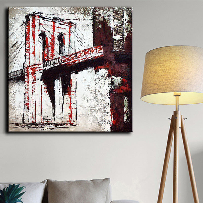 Abstract Handpainted Textured Bridge Oil Painting Modern Landscape Wall Art Canvas Painting For Living Room,31inx31in,No Frame