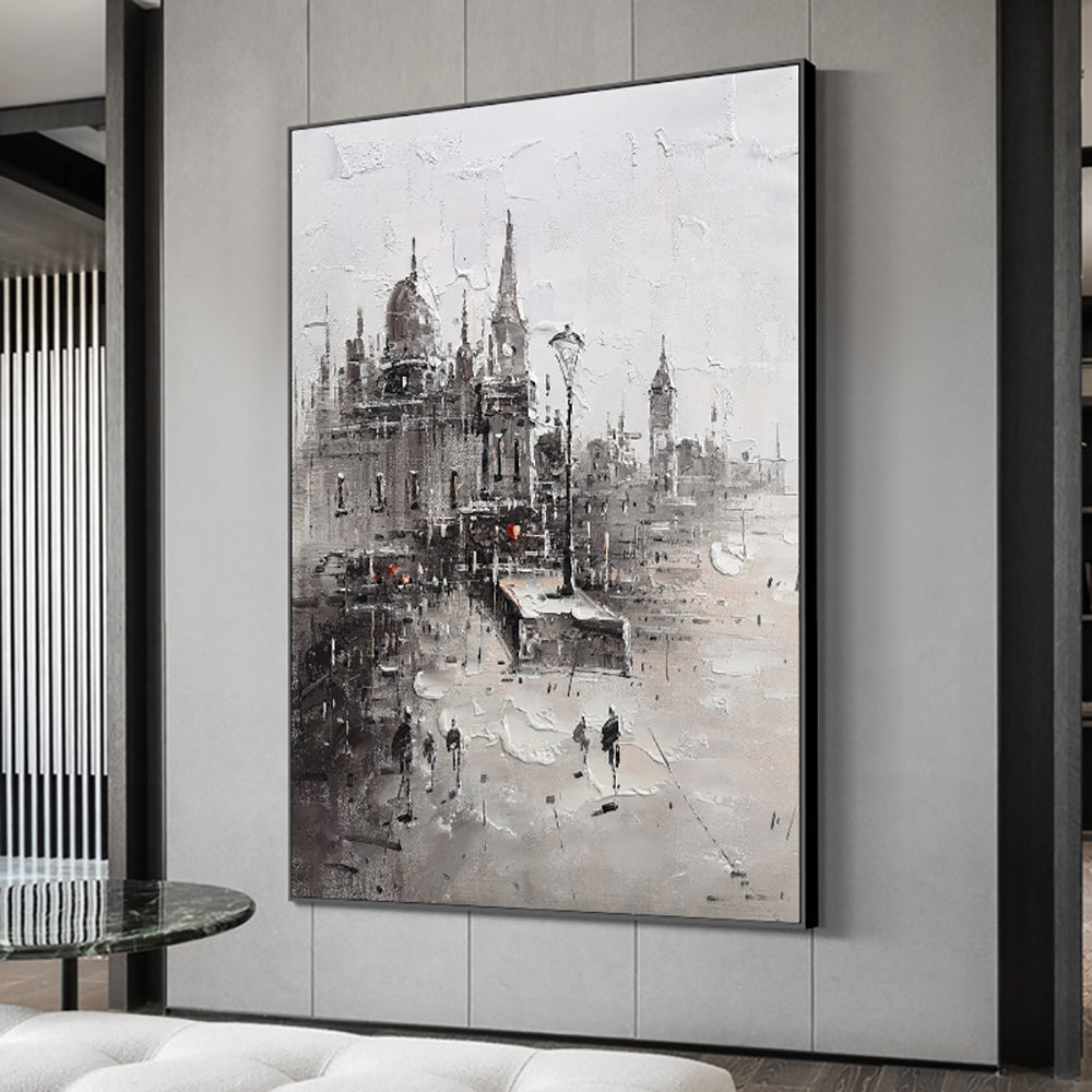 Abstract Landscaple Oil Painting Northern Europe Light Luxury Style Decorative Cityscape Hand Painted Oil Painting Art,31inx47in,No Frame