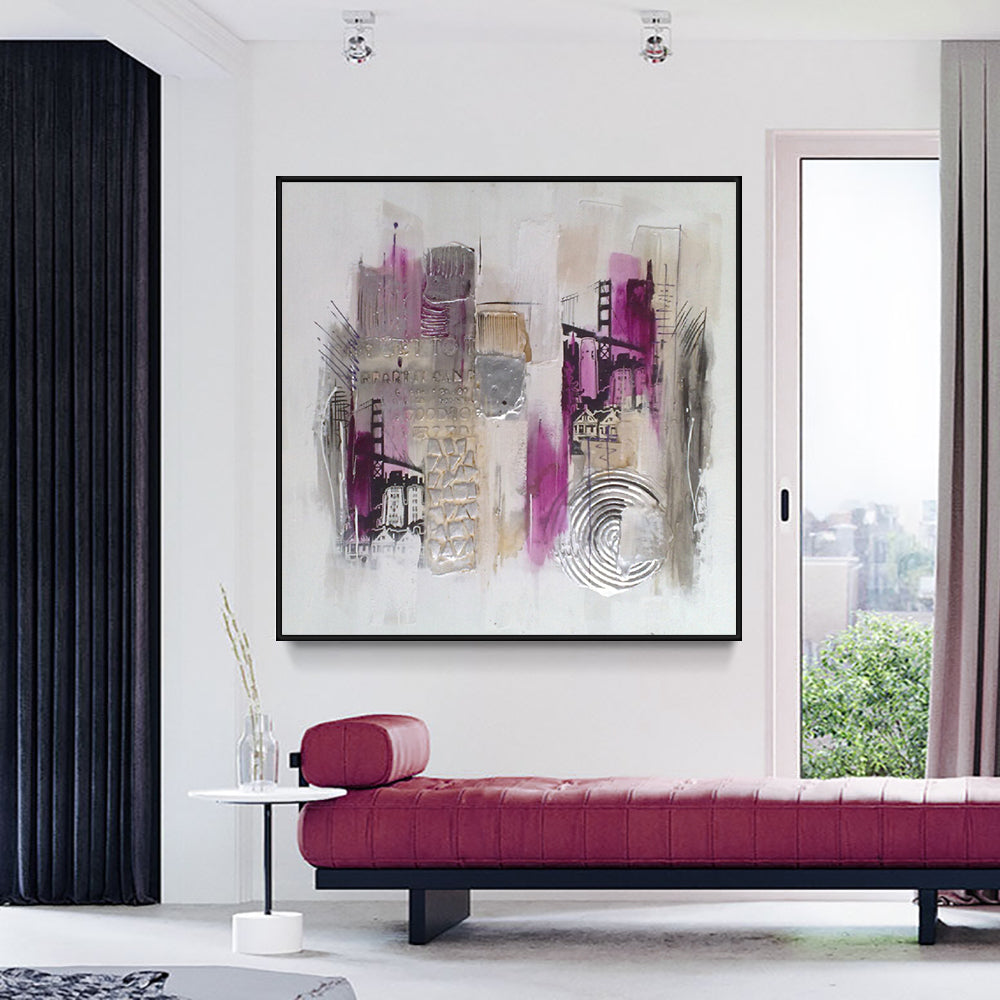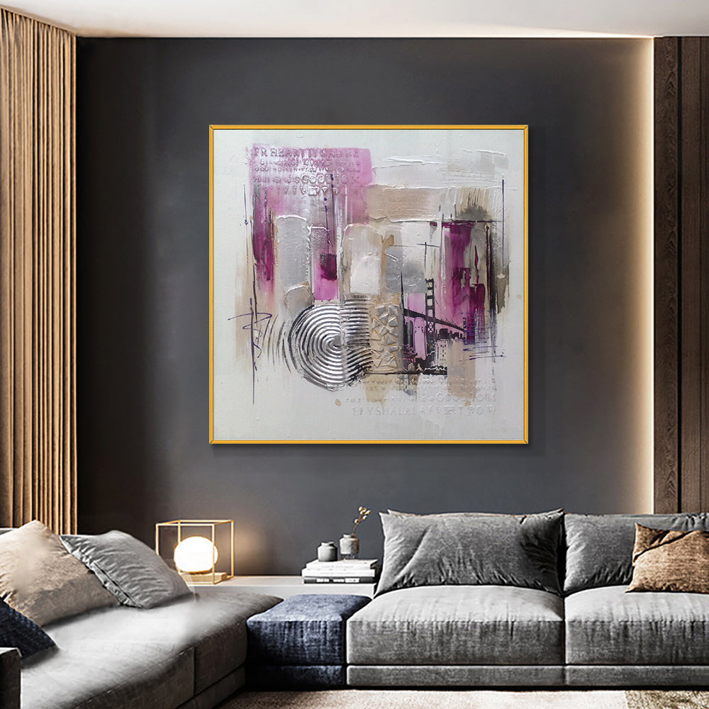Abstract Large Size City Building Paintings Handpainted Oil Painting On Canvas Handmade Wall Art,31inx31in,No Frame