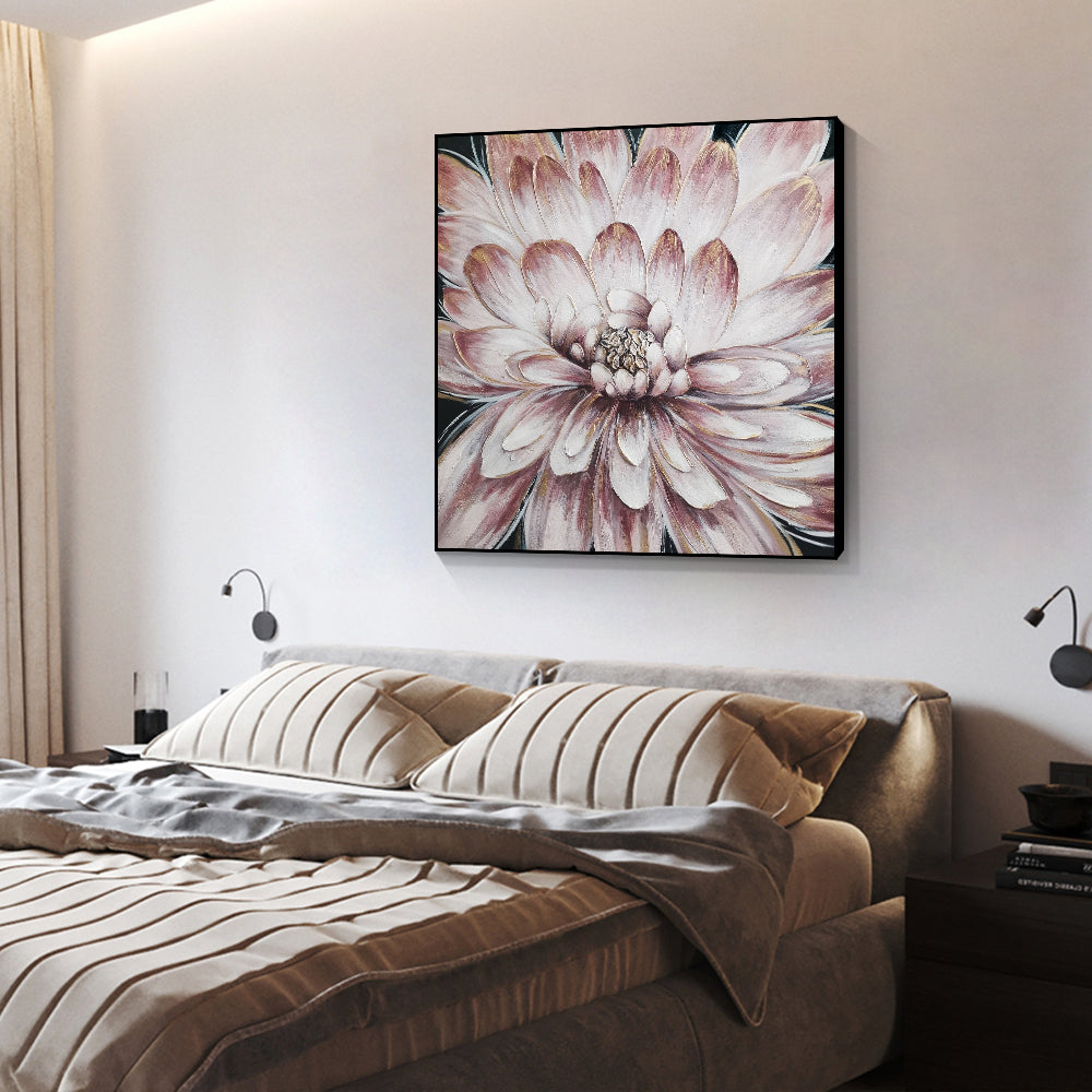 Abstract Textured Pink Flower Oil Painting Hand Painted On Canvas Modern Plant Canvas Wall Art,31inx31in,No Frame