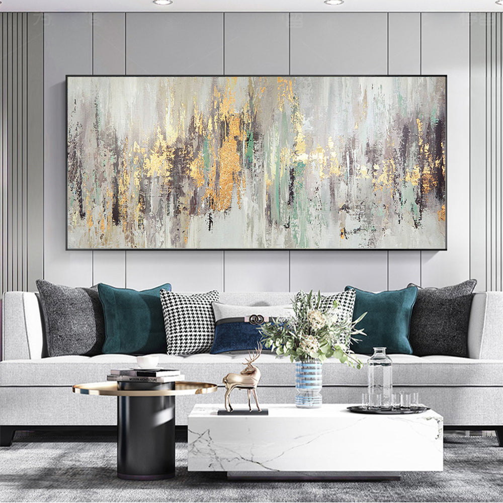 Abstract Wall Paintings Handmade On Canvas Picture Abstract Landscape Golden Oil Painting Hand Painted Living Room,27inx54in,No Frame