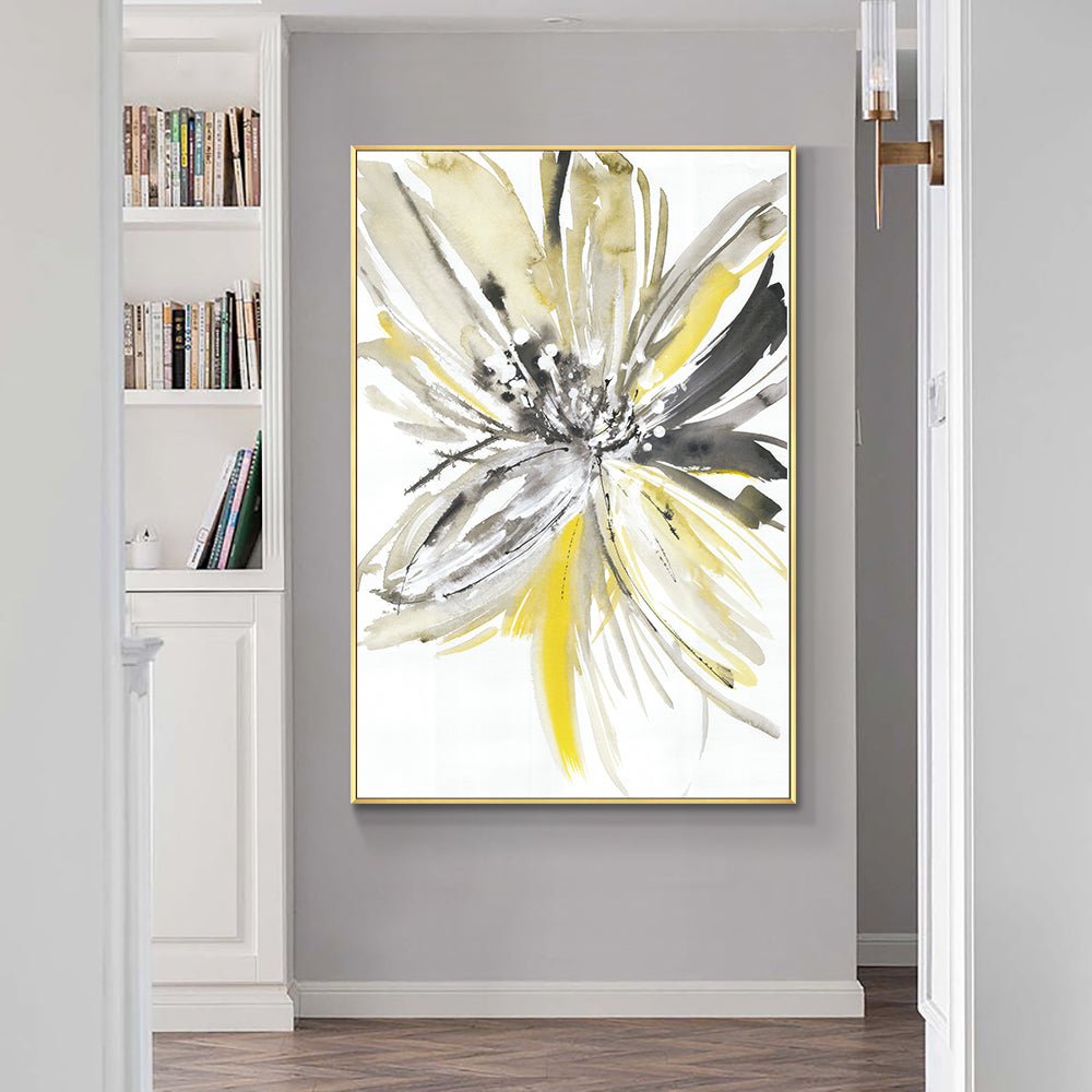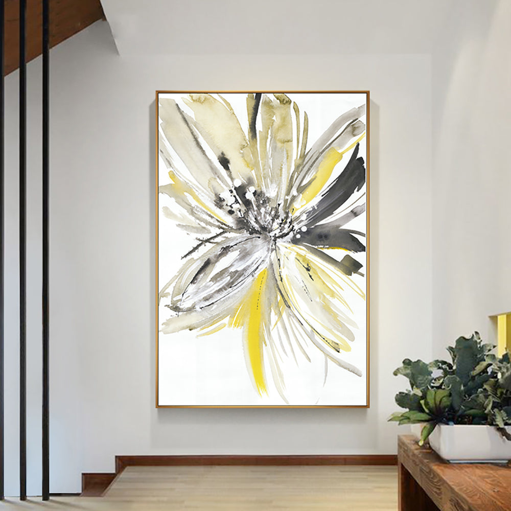Abstract Yellow Flower Painting Hand Painted Oil Painting On Canvas Handmade Painting Modern Wall Art For Living Room,31inx47in,No Frame