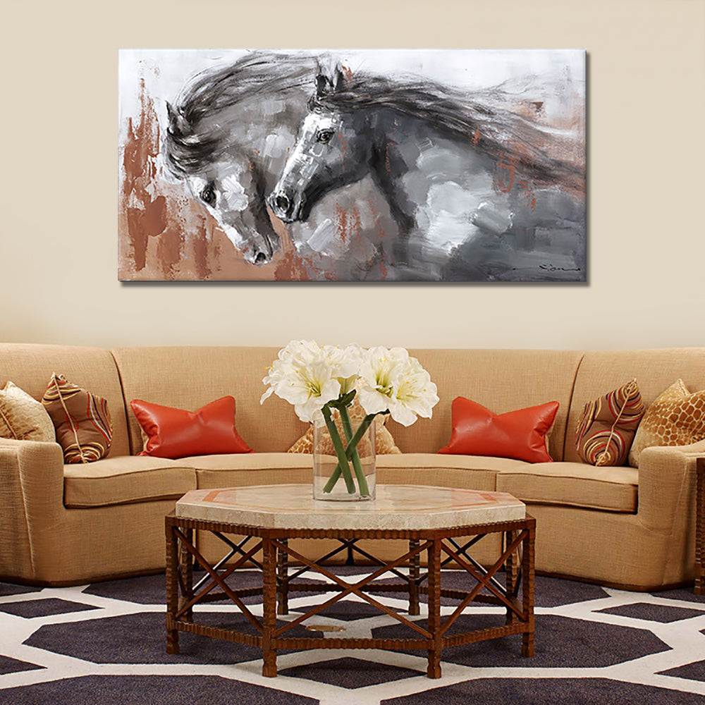Animals Picture Abstract Oil Painting On Canvas Handmade Running Horses Wall Art Home Office Hotel Large,27inx54in,No Frame