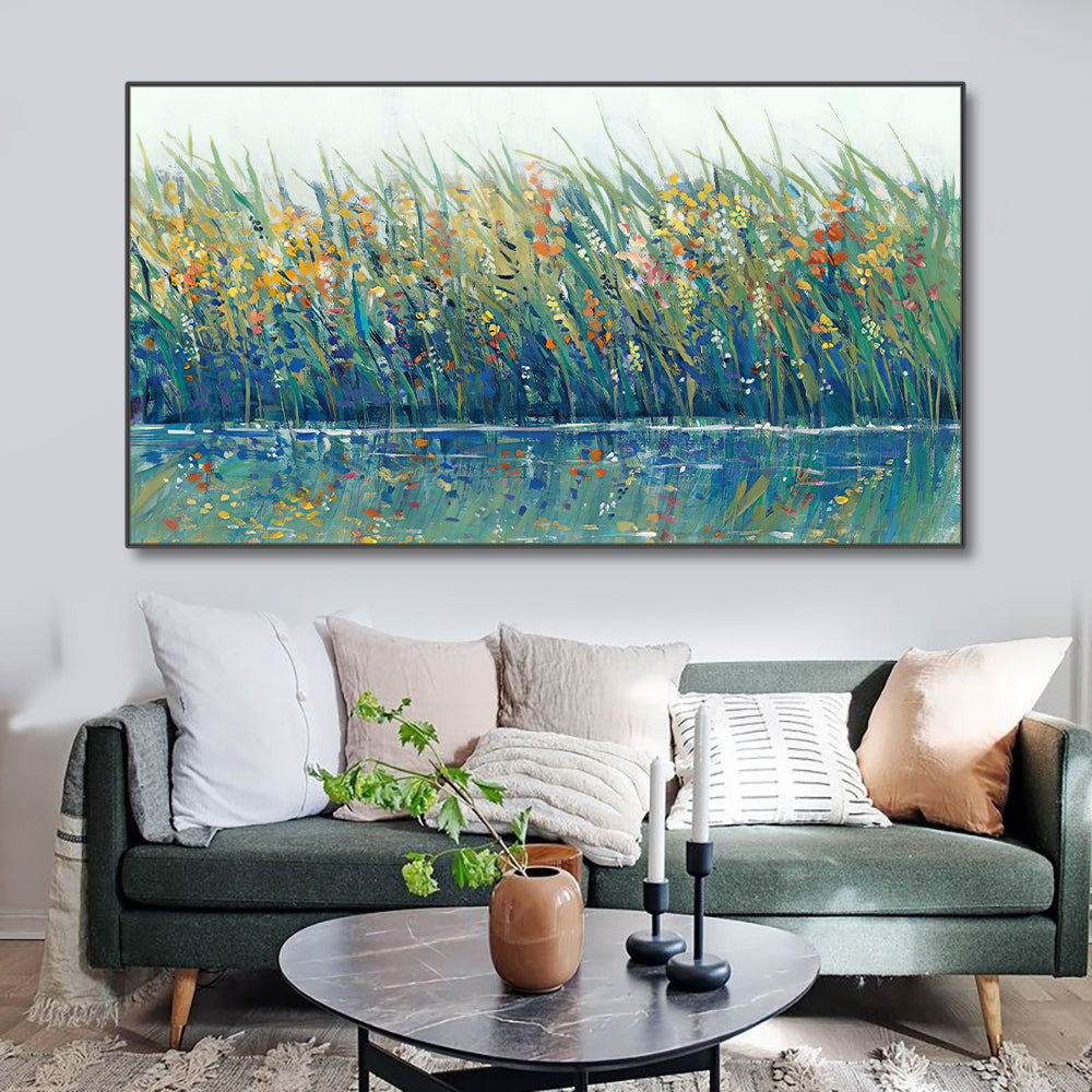 Hand painted Abstract Green Plant Landscape Oil Painting Canvas Wall Art Handmade Flower Oil Artwork,27inx54in,No Frame