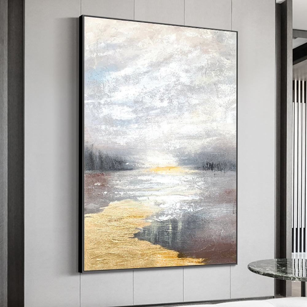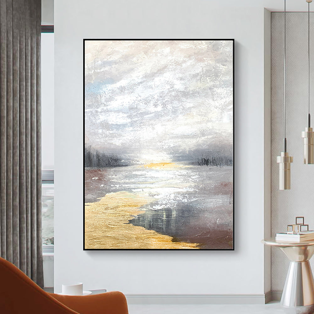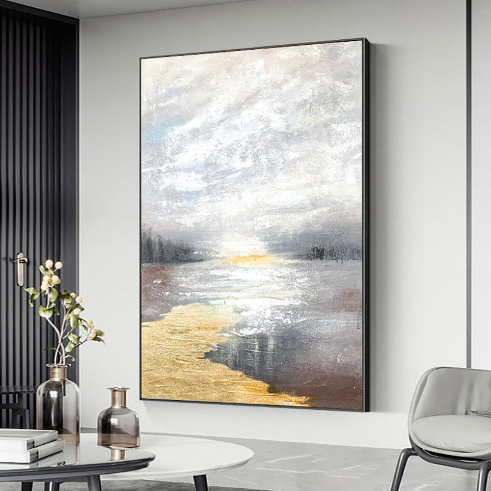 Hand Painted Beautiful Oil Painting Abstract Landscape Sunrise River Canvas Painting Art Living Room Decoration Wall For Living Room,31inx47in,No Frame