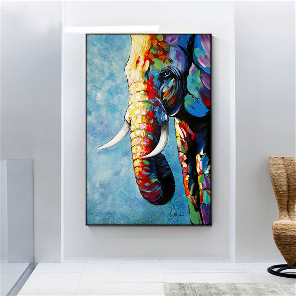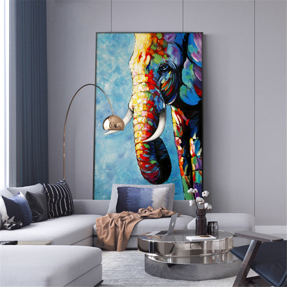 Hand Painted Elephant Oil Painting On Canvas Handmade Animal Wall Art Pictures Abstract Paintings For Living Room,31inx47in,No Frame