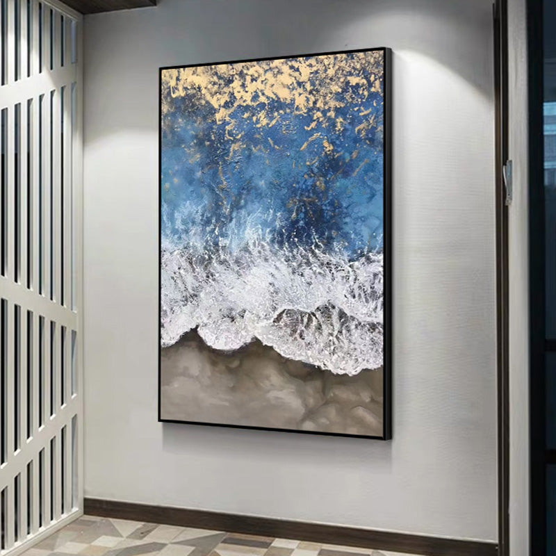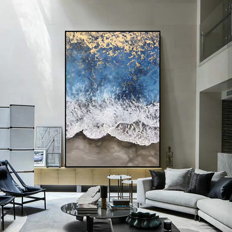 Hand painted Hotel Decorative Modern Wall Acrylic Art Canvas Picture Seascape Artwork Sea Wave Abstract Oil,31inx47in,No Frame