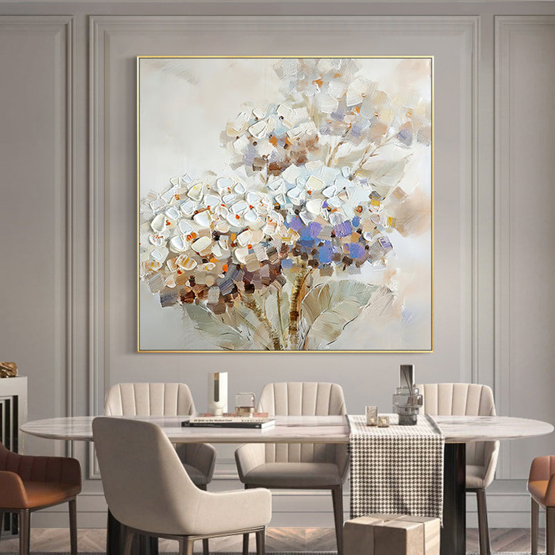 Hand Painted New Textured Design Oil Painting Home Wall Decoration White Flower Art Canvas Picture,31inx31in,No Frame