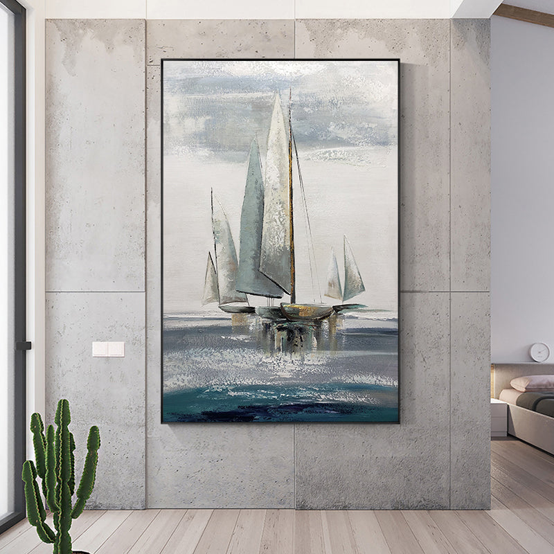 Hand painted Nordic Blue Seascape White Waves Canvas Oil Painting Living Room Bedroom Wall Art,31inx47in,No Frame
