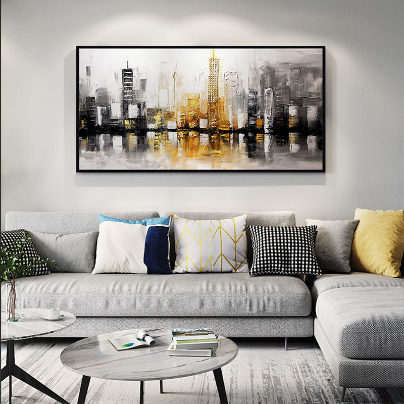Hand painted oil painting abstract modern light living room luxury bedroom City Impression oil painting decorative,27inx54in,No Frame
