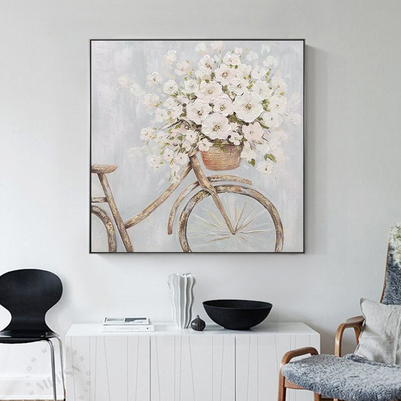 Hand painted Oil Painting Flower Corridor Canvas Painting Restaurant Decoration Painting Living Room Background Wall Art,31inx31in,No Frame