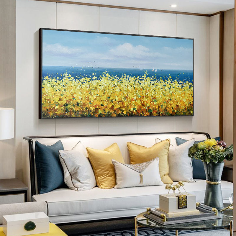 Hand Painted Oil Painting Modern Abstract Canvas Painting Wall Art Handmade Flowers Picture Living Room Home,27inx54in,No Frame