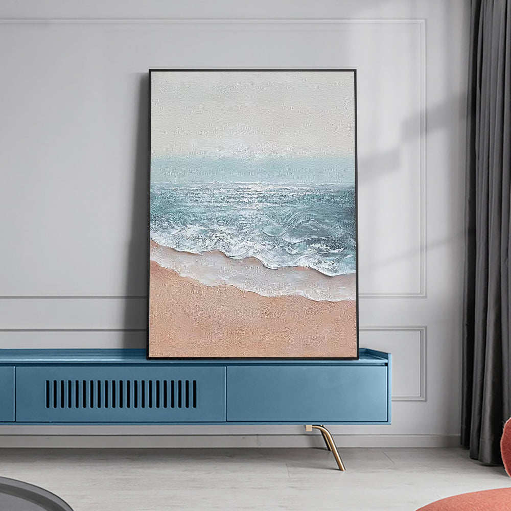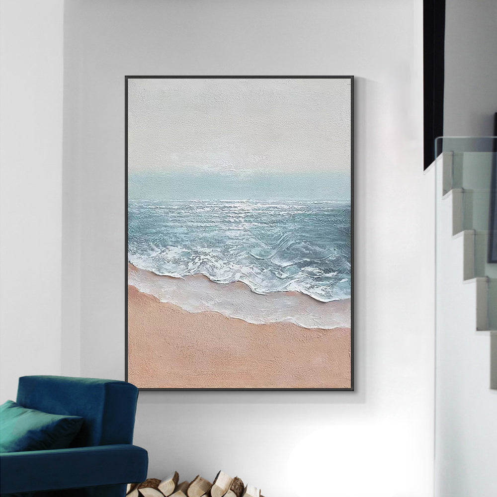 Hand painted Oil Painting Nordic Canvas Wall Art Handmade Beach Seascape Abstract Heavy Oil Painting Wall Art For Home Living Room,31inx47in,No Frame