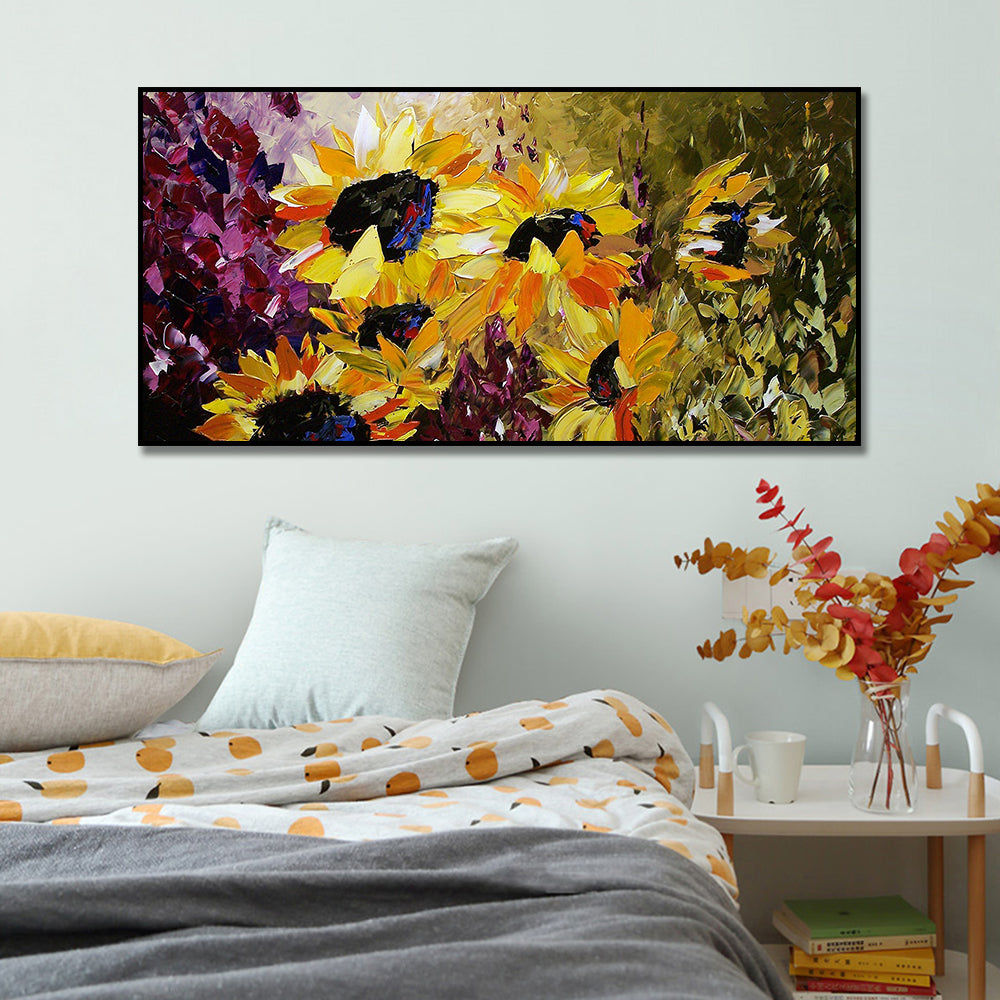 Hand painted Oil Painting Van Gogh Sunflower Wall Art Picture Handmade Modern Knife Oil Painting ,27inx54in,No Frame
