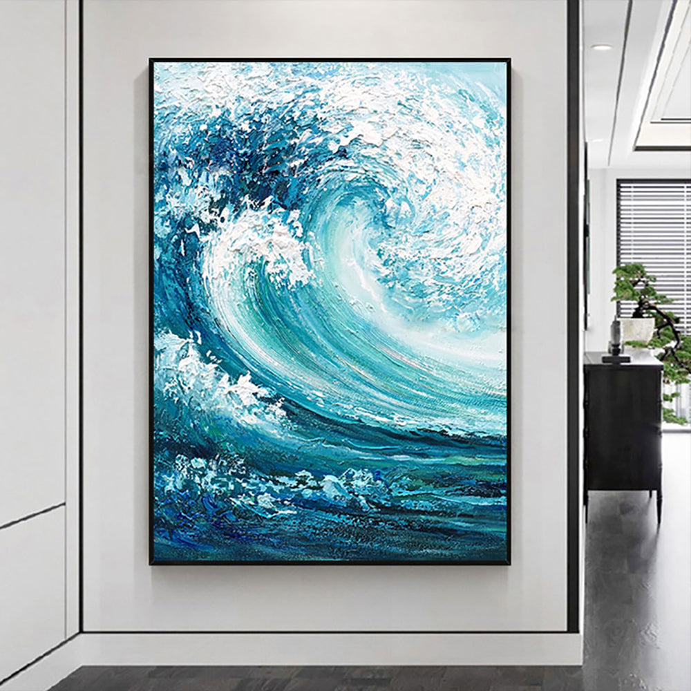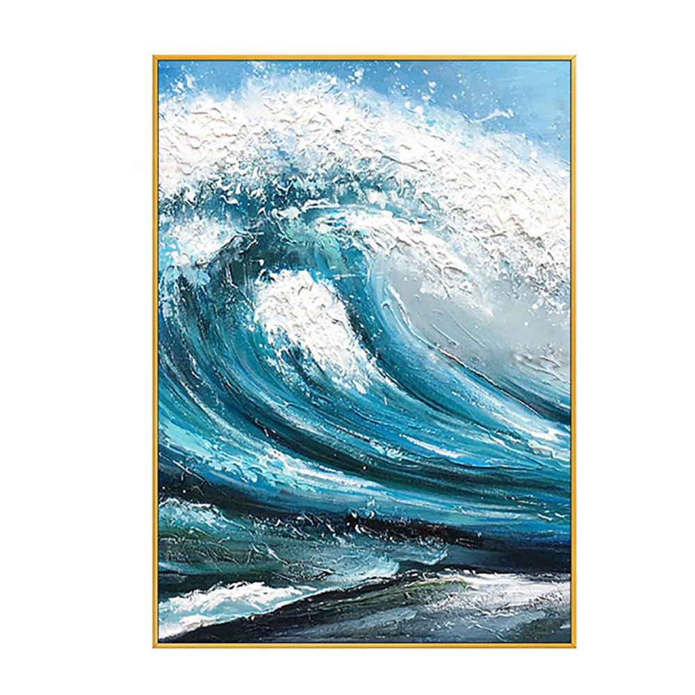 Hand Painted Thick Oil Canvas Painting 3D Waves Seascape Pictures Handmade Abstract Wall Art For Living Room,31inx47in,No Frame