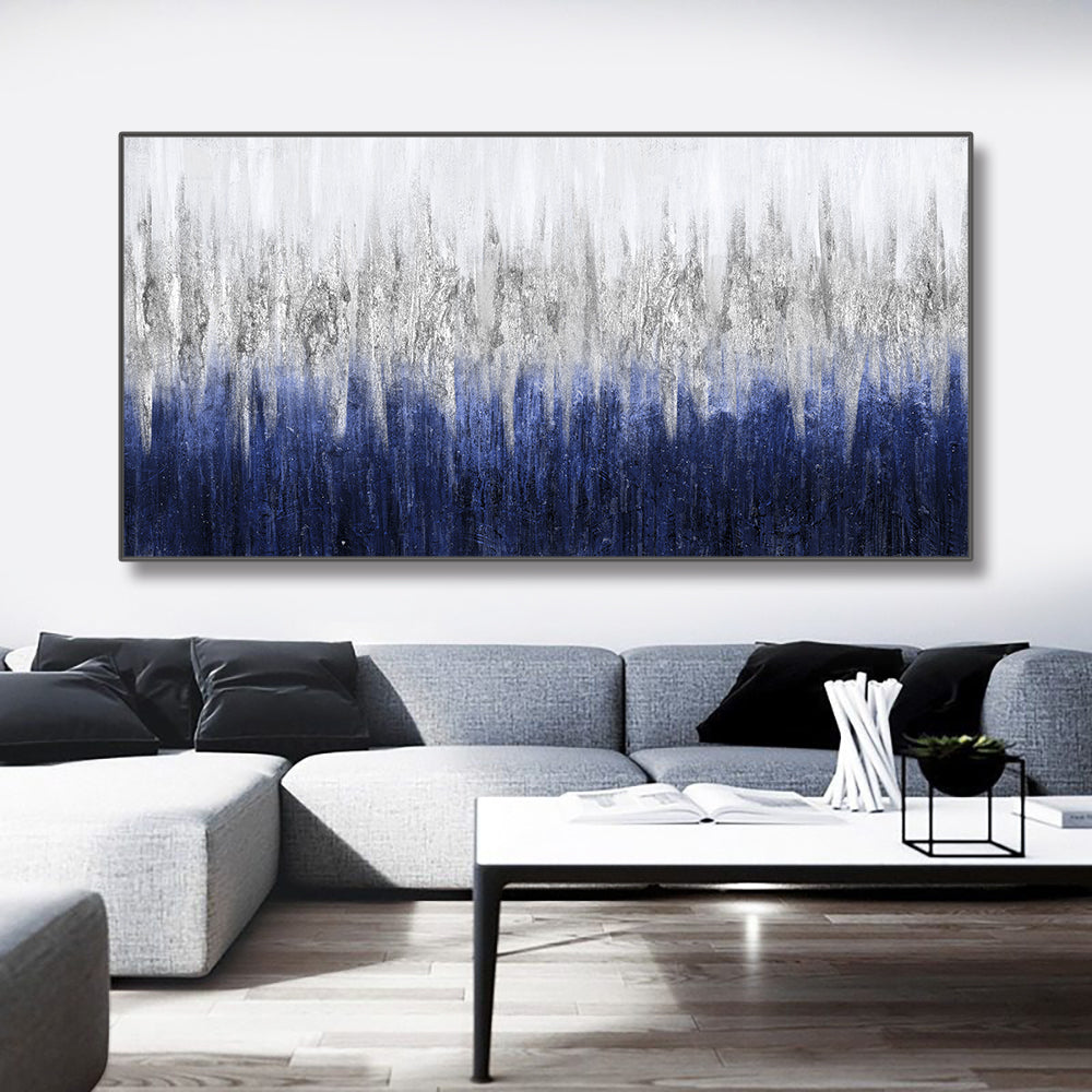 Handmade Abstract Blue Grey Texture Oil Painting On Canvas Modern Landscape Wall Art For Living room,27inx54in,No Frame