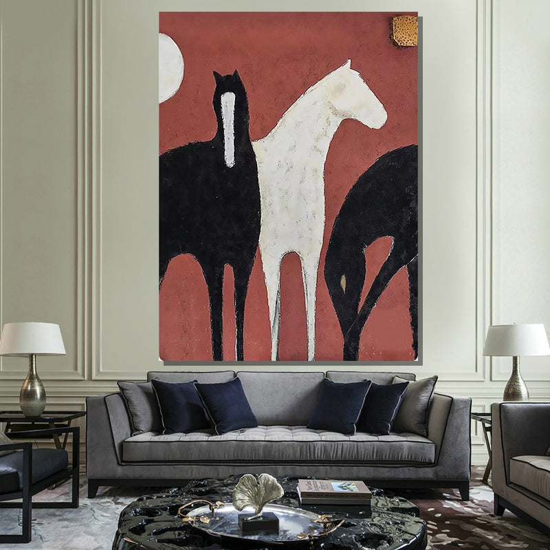 Handmade Animal Horse Oil Painting Modern Wall Art On Canvas Hanging Mural Living Room Picture Artwork,31inx47in,No Frame