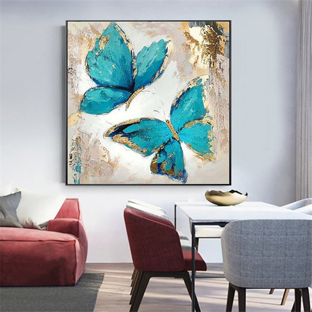 Handmade Butterfly Oil Painting On Canvas Abstract Flower Art Wall Painting For Living Room Pictures Hand,31inx31in,No Frame