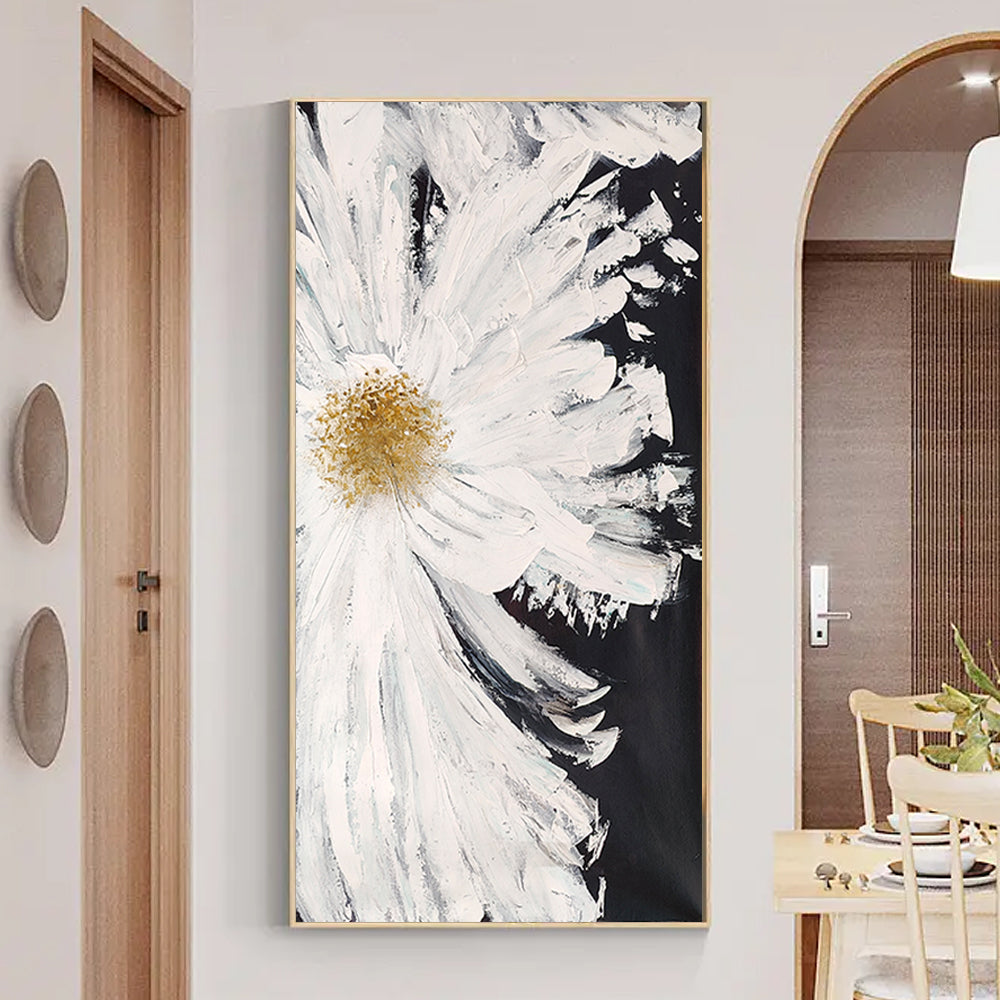 Handmade White Flower Picture Wall Art Paintings Handpainted Oil Painting Daisy On Canvas Modern Home,27inx54in,No Frame