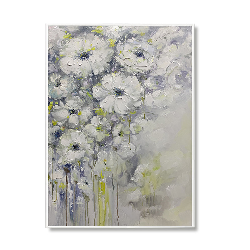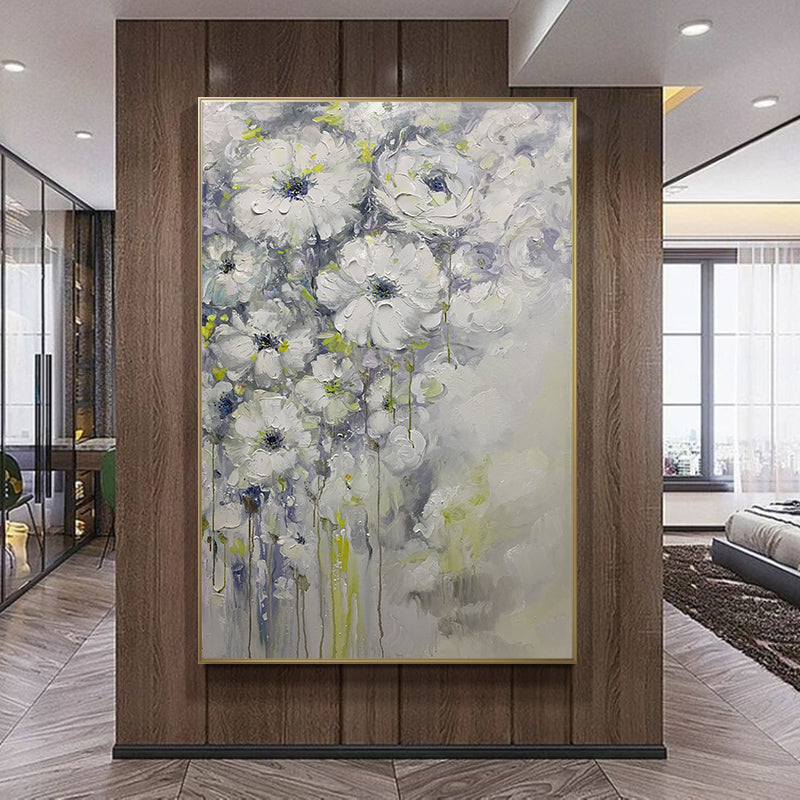 Handmade White Flower Wall Art Oil Painting Canvas Hand Painted Thick Texture Oil Painting Home Living For Living Room,31inx47in,No Frame