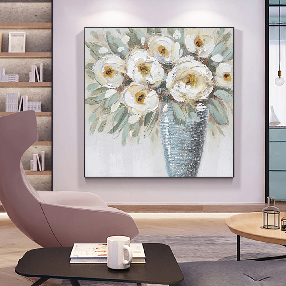 High Guality Hand Painted Decorative Painting Living Room Mural Absract Wall Art Thick Texture Flowers,31inx31in,No Frame