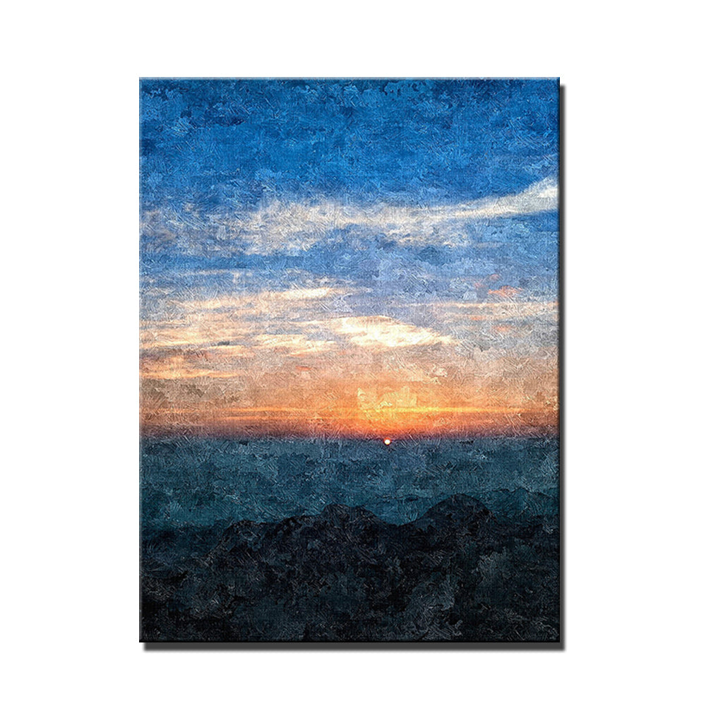 Large Wall Art Hand Painted Abstract Sunset Oil Painting On Canvas Abstract Landscape Painting Living Room,31inx47in,No Frame