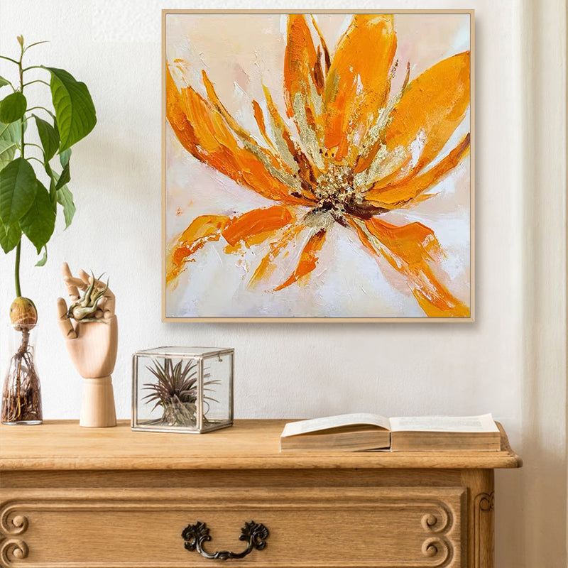 Light Luxury Style American Restaurant Decoration Painting Modern Minimalist Square Abstract Flower Living Room Hand Painting,31inx31in,No Frame