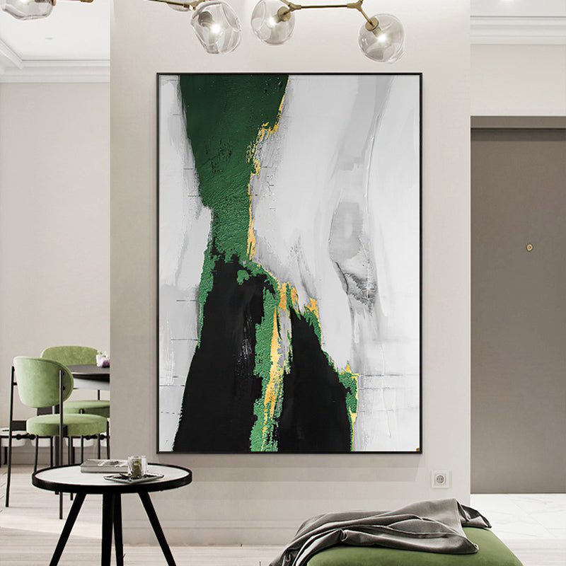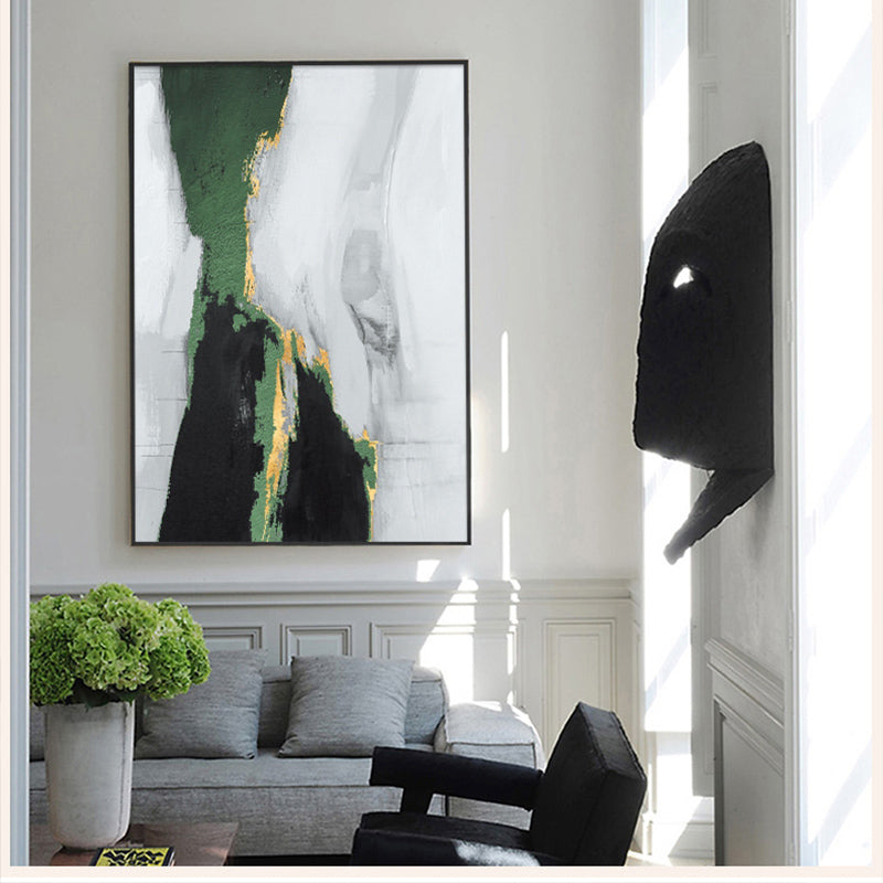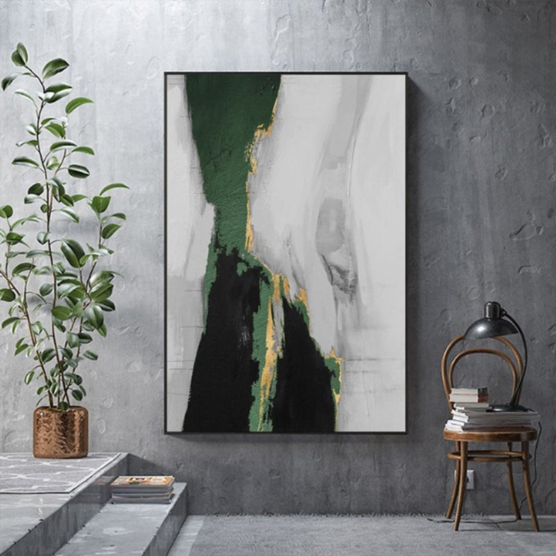 Modern Abstract Gold foil lines Green Canvas Art Paintings For Living Room Bedroom Posters And Prints,31inx47in,No Frame