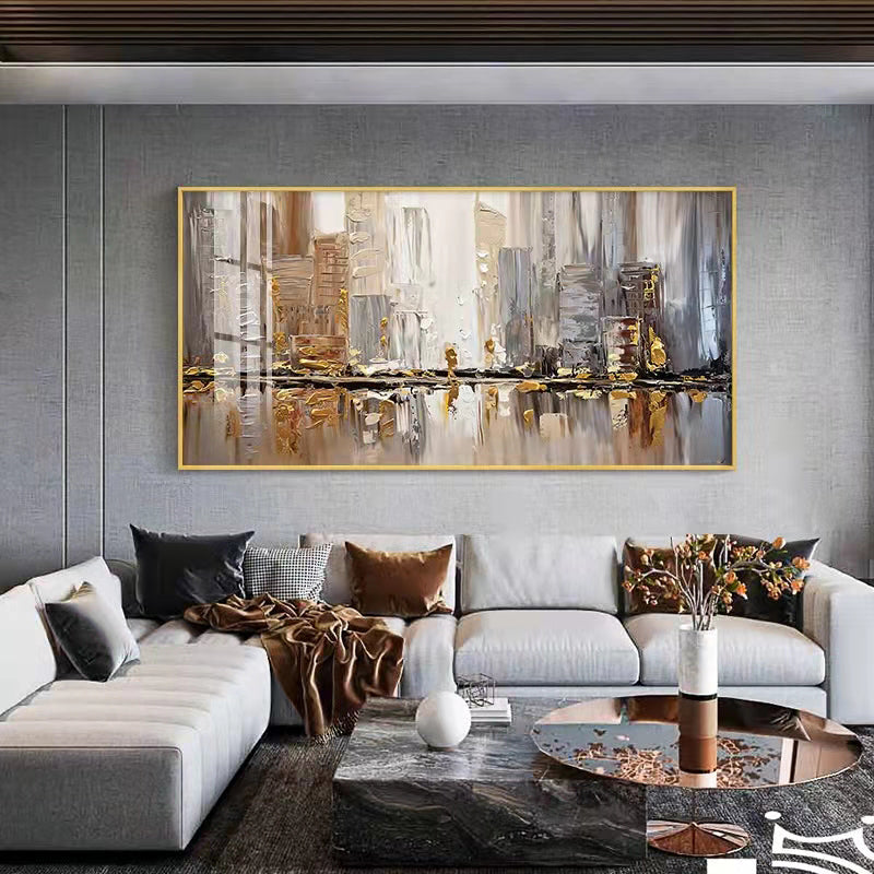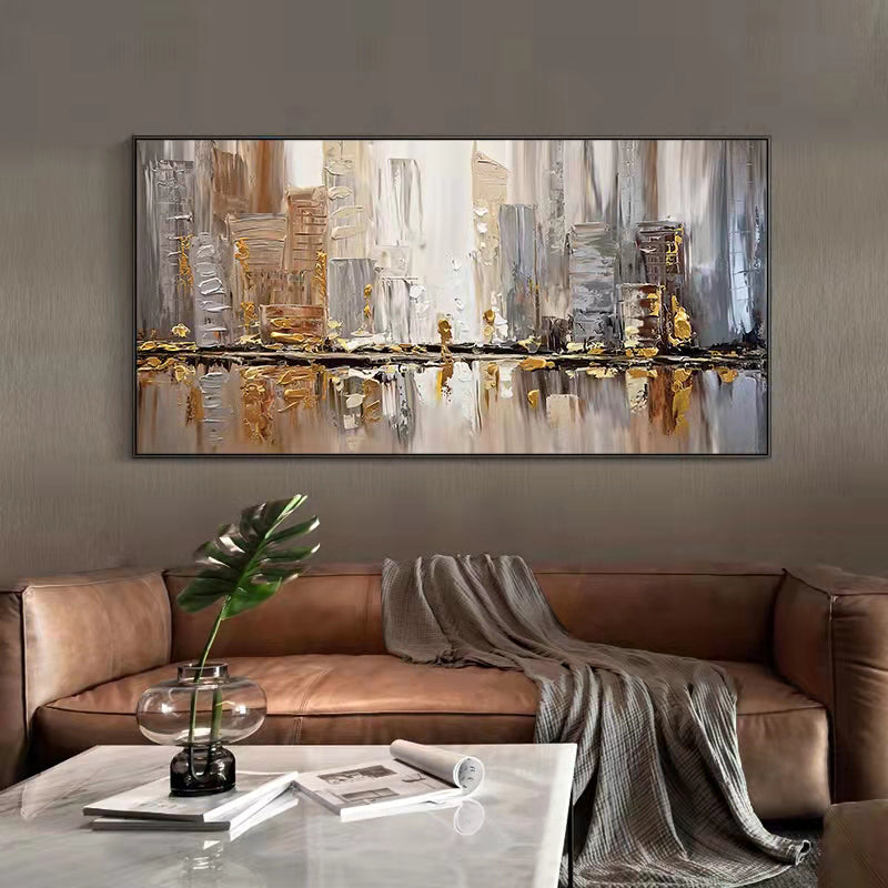 Modern Abstract Living Room Decoration Painting Office Mural Sofa Background Wall Hanging Painting City Handpainted Oil,27inx54in,No Frame