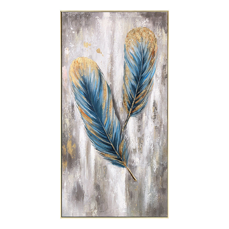 Modern Hand painted Oil Painting Decoration Vertical Prints Feather Decorative Painting Home Hanging Painting Wall Art,27inx54in,No Frame