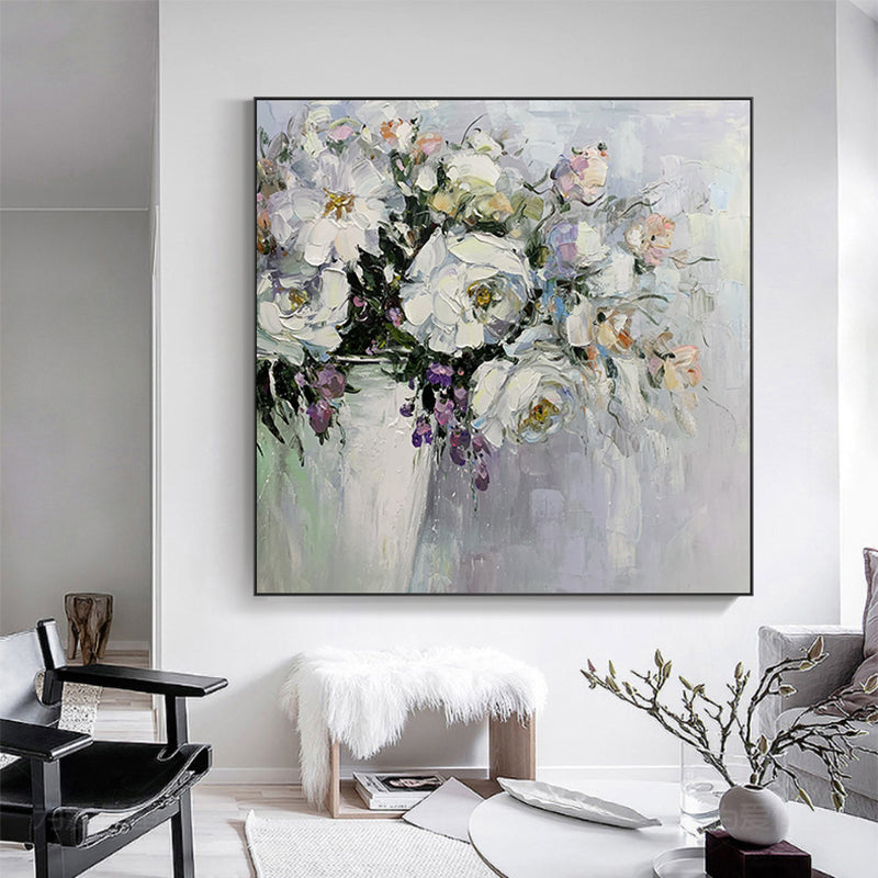 Modern Home Decor Wall Art Pictures Thick Texture White Flower Oil Painting On Canvas Hand Painted