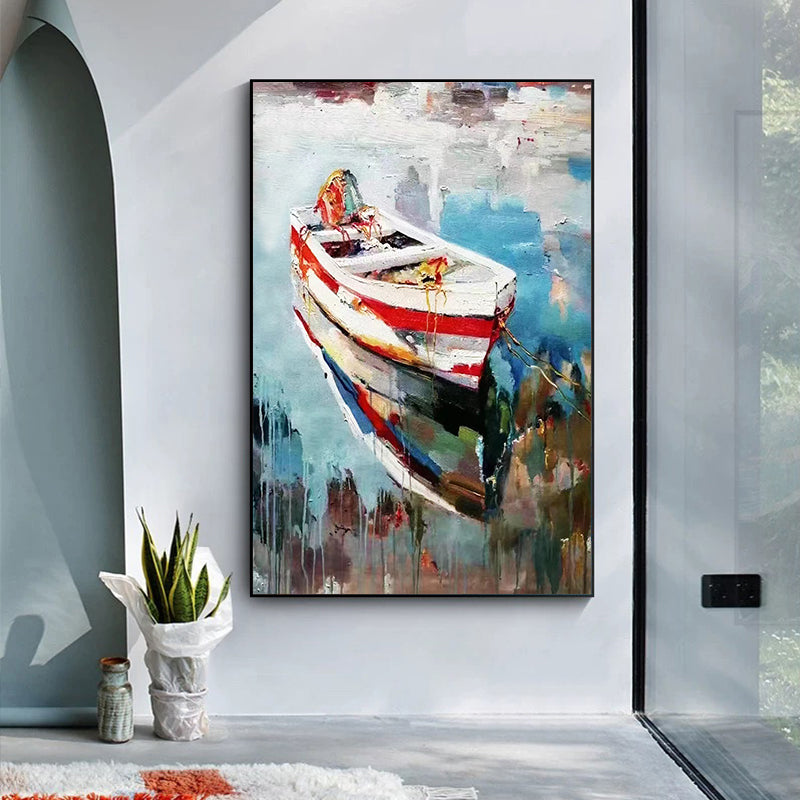 Modern minimalist decorative painting landscape oil painting boat mooring living room sofa background wall abstract painting