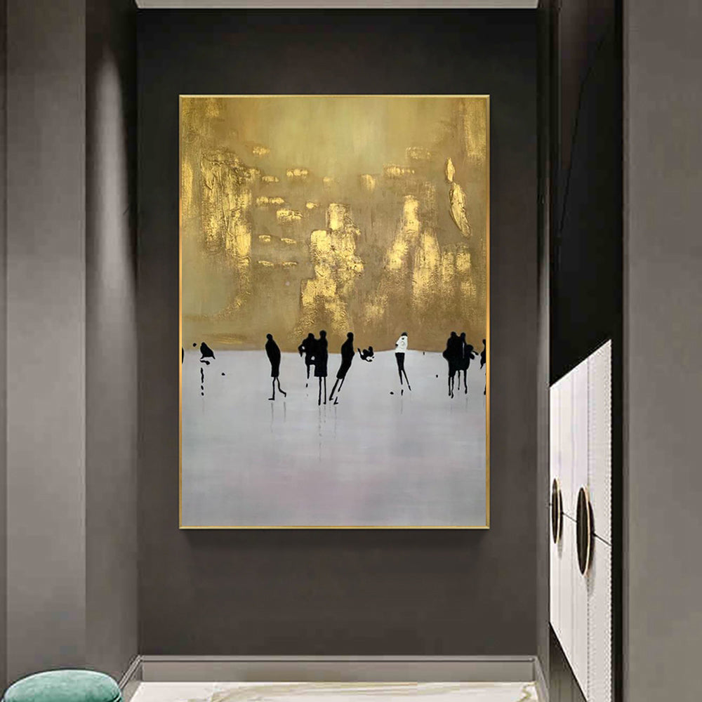 Modern Wall Art Hand Painted Figure Painting Abstarct Landscape Picture Handmade Oil Painting For Home Office,31inx47in,No Frame