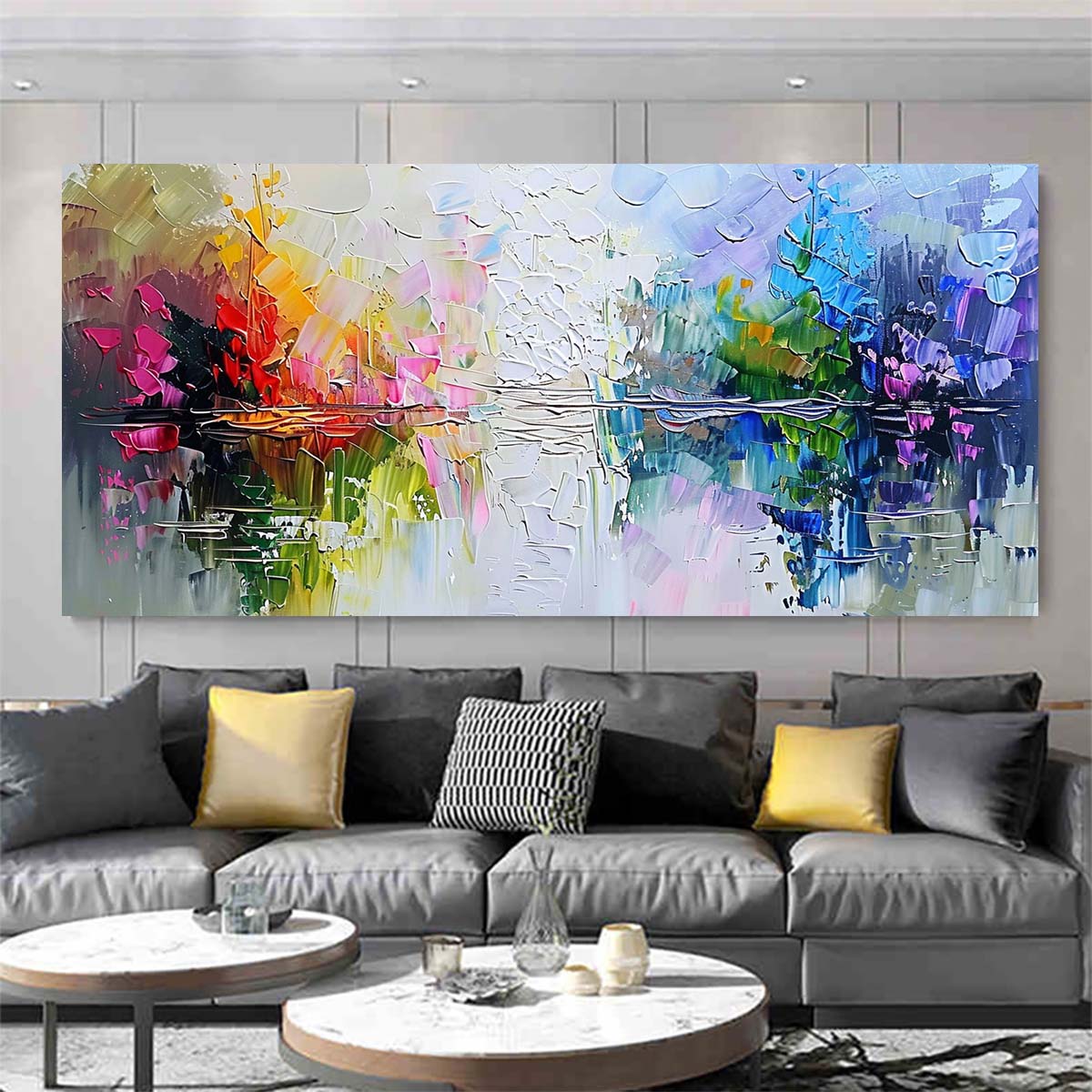 A new type of Abstract Wall Painting. a living room wall art, a hand-painted heavy textured impasto painting painted by our most noble artists. All images are painted by palette knife, so they will leave the canvas surface and look very vivid. I hope this beautiful and vivid acrylic painting with heavy texture can provide a very beautiful decoration for your walls.