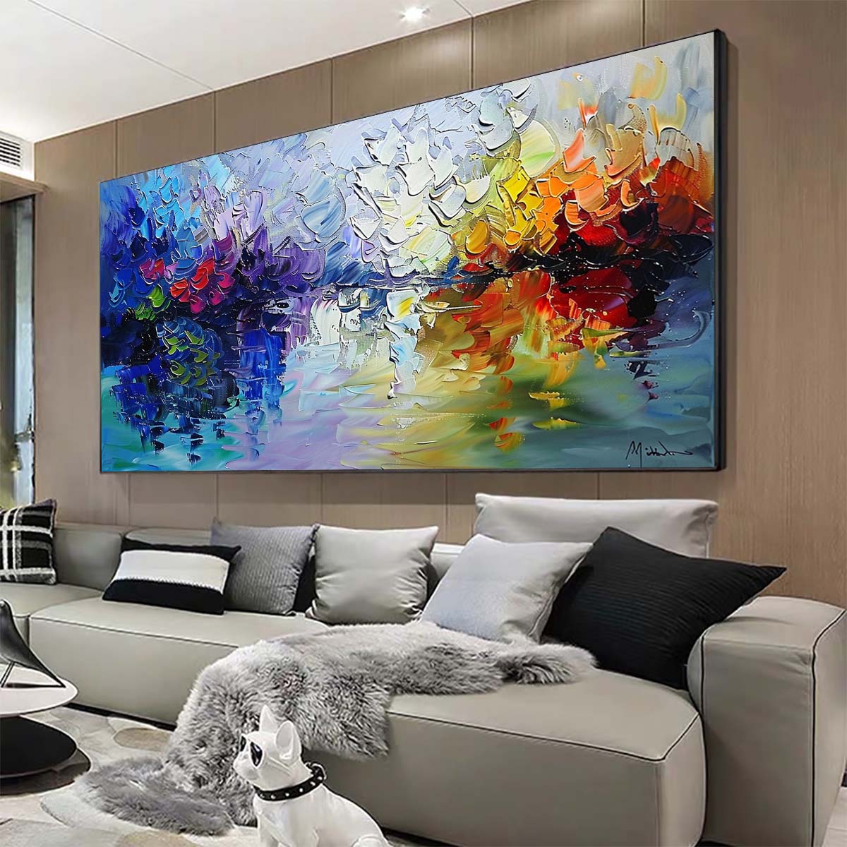 A new type of Abstract Wall Painting. a living room wall art, a hand-painted heavy textured impasto painting painted by our most noble artists. All images are painted by palette knife, so they will leave the canvas surface and look very vivid. I hope this beautiful and vivid acrylic painting with heavy texture can provide a very beautiful decoration for your walls.