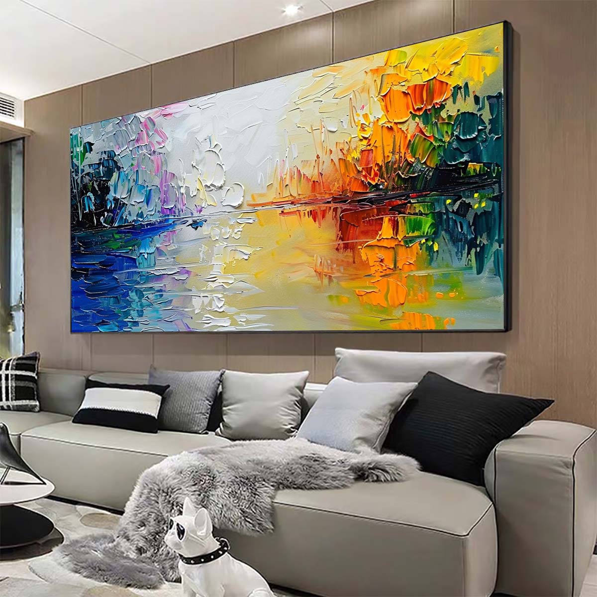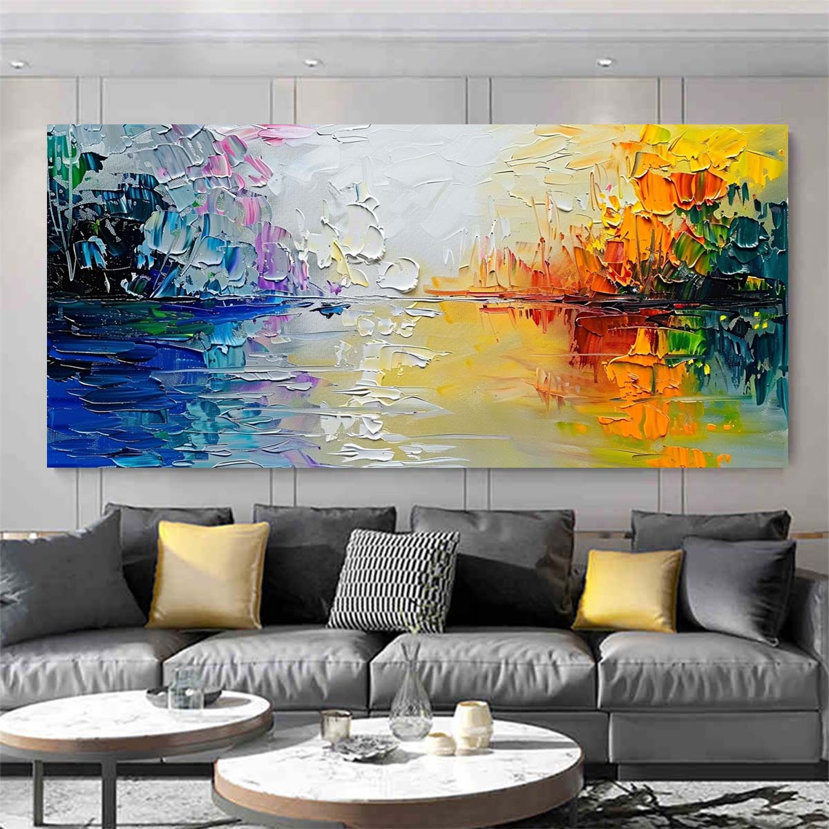A new type of Abstract Wall Painting. a living room wall art, a hand-painted heavy textured impasto painting painted by our most noble artists. All images are painted by palette knife, so they will leave the canvas surface and look very vivid. I hope this beautiful and vivid acrylic painting with heavy texture can provide a very beautiful decoration for your walls.