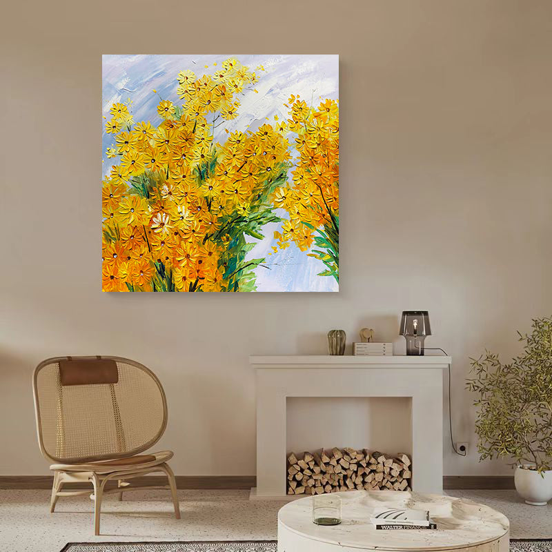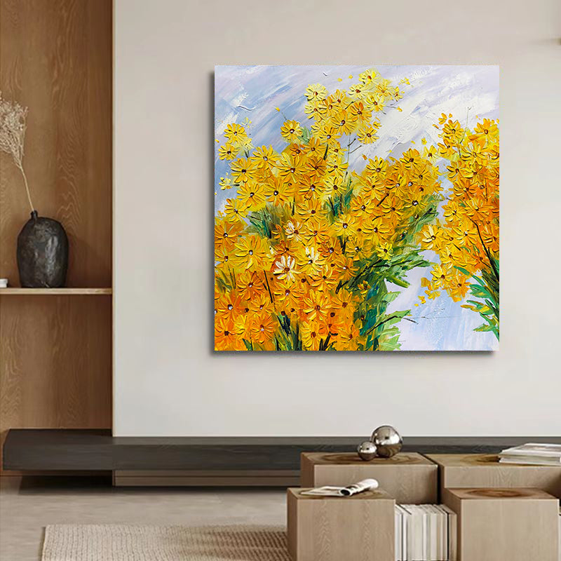 Original Hand painted Oil Painting Flowers Modern Living Room Dining Room Decorative Painting Landscape Art Hanging,31inx31in,No Frame