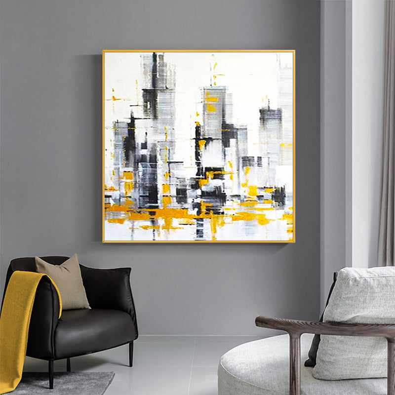 Pure Hand painted Decorative Painting City Scenery Entrance Living Room Bedroom Modern Canvas Painting,31inx31in,No Frame
