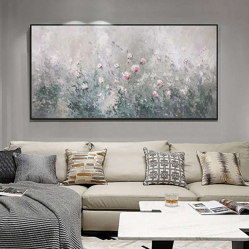 Pure Handpainted Oil Painting Horizontal Version of Flower Paintings Living Room Sofa Bedroom Decorative Painting Abstract,27inx54in,No Frame